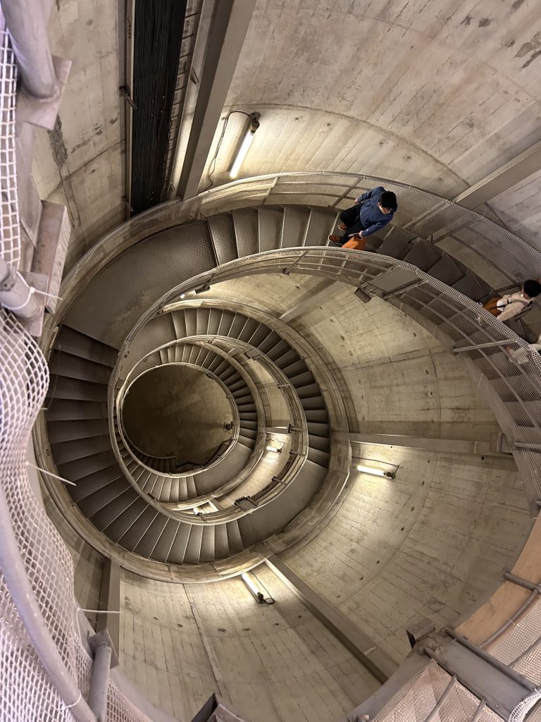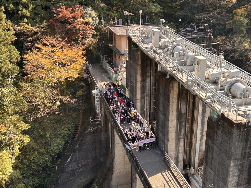 12:00、白丸ダムに到着しました。ダムは水力発電を行い、らせん状の階段を下りていくと、魚道がありました。これは、魚の遡上を助ける、日本最大級のものです。ダムの周辺は秋の彩りをゆっくり楽しむことができました。